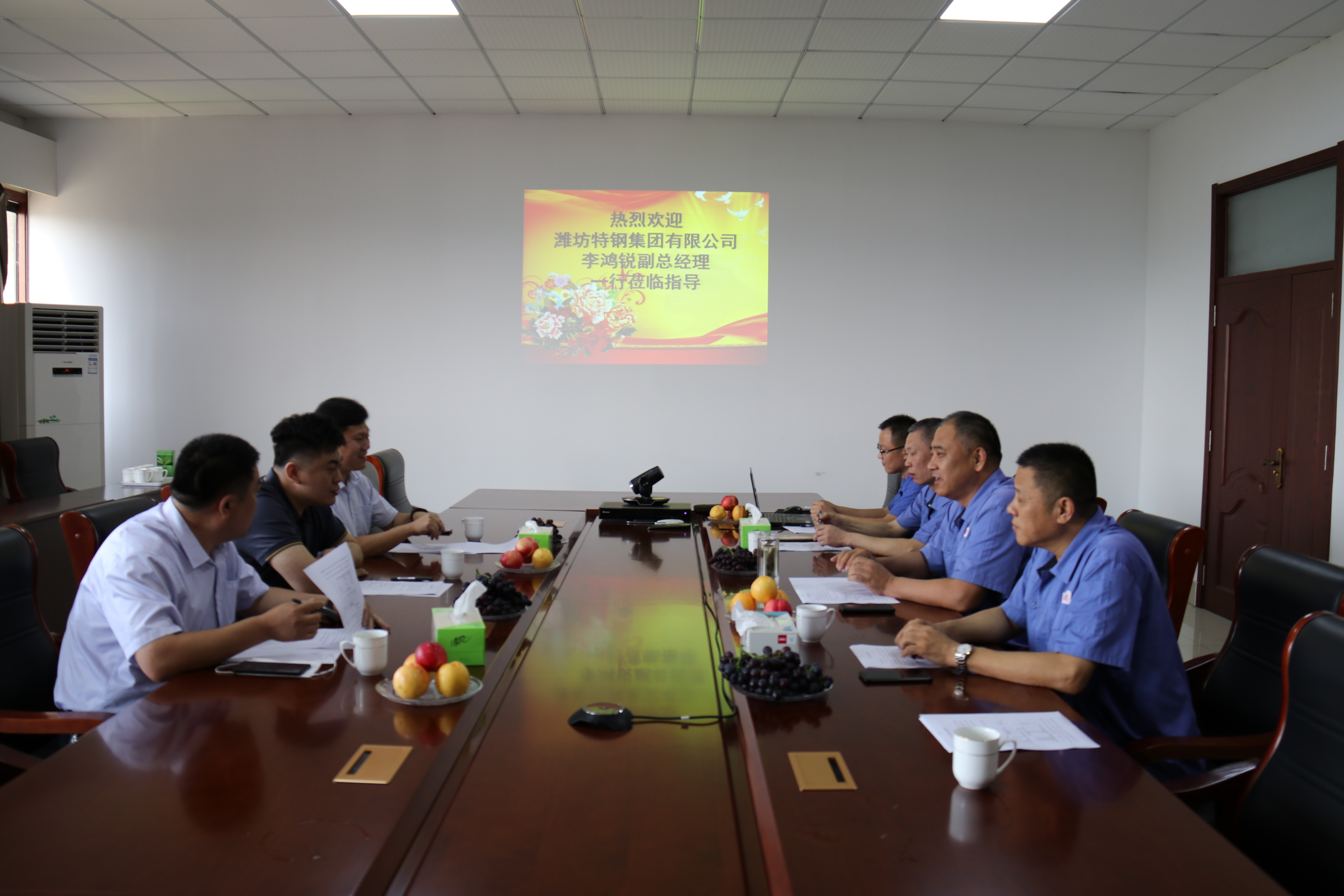 7月20日,濰坊特鋼集團(tuán)公司副總經(jīng)理李鴻銳一行三人到振興焦化公司調(diào)研交流,振興焦化公司總經(jīng)理?xiàng)蠲髡⒏笨偨?jīng)理秦宏偉等領(lǐng)導(dǎo)熱情接待。