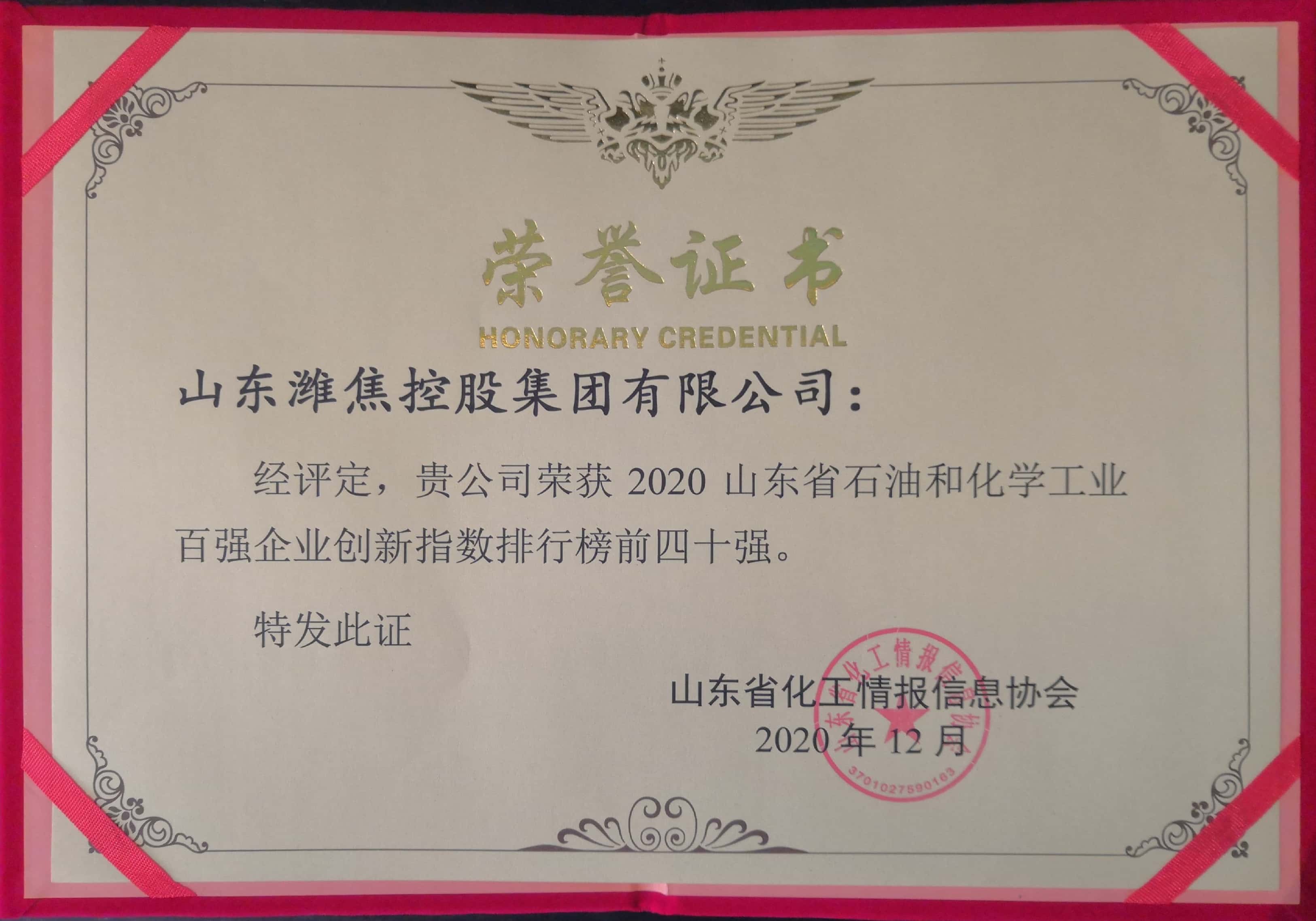12月16日至17日,由山東省化工情報信息協(xié)會主辦的2020(第十屆)中國化工產(chǎn)學(xué)研高峰論壇在東營廣饒召開。會上,集團公司榮獲“2020山東省石油和化學(xué)工業(yè)100強企業(yè)”稱號,并在百強企業(yè)創(chuàng)新指數(shù)排行榜位列35位。