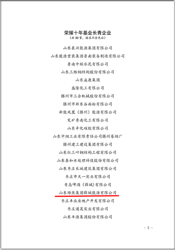 1月15日上午,由棗莊市工信局、市企業(yè)家協(xié)會、市企業(yè)聯(lián)合會、市工業(yè)經(jīng)濟(jì)聯(lián)合會(市企聯(lián)三會)主辦的“棗莊企業(yè)家活動日”在新城舉行,山東濰焦集團(tuán)薛城能源公司榮獲“榮耀十年基業(yè)長青企業(yè)”稱號。