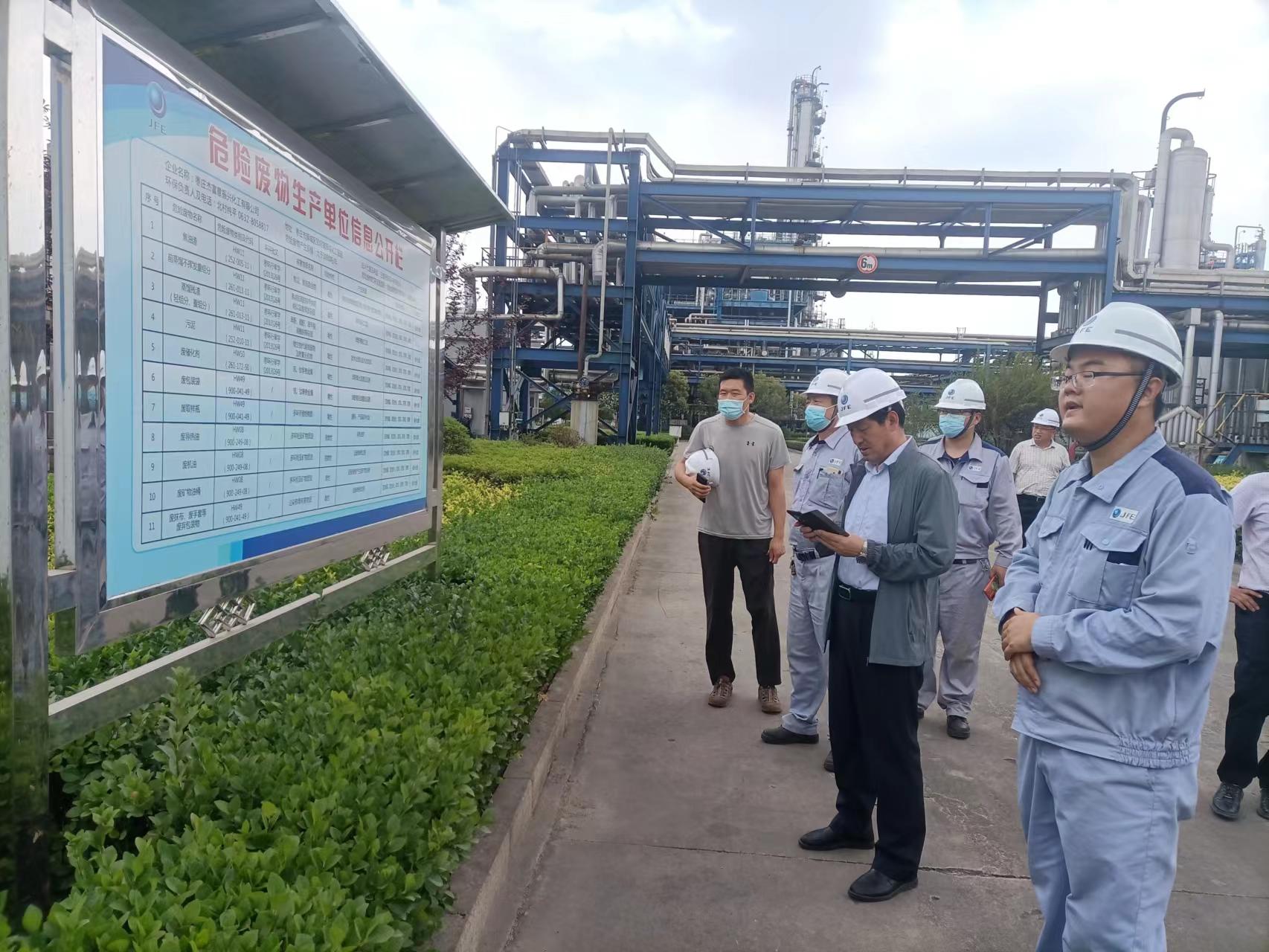 6月22日上午,山東省固廢和危化品污防中 心副主任呂瑞學帶領省生 態環境廳危險廢物幫扶組一行到棗莊杰富意公司檢查指導危險廢物管理工作。棗莊市生 態環境局固廢土壤科科長高虎、市生 態環境局薛城分局副局長郭濤,公司安 全總監楊建杰等陪同。